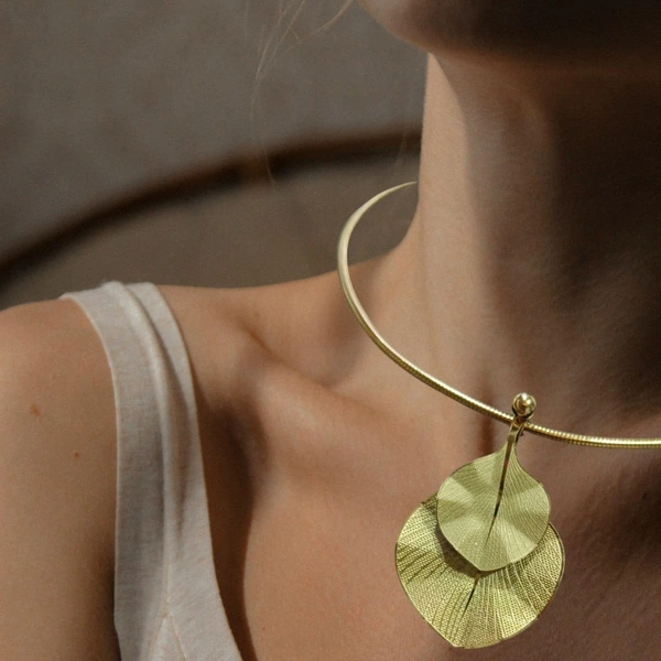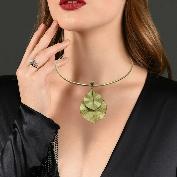 Anti Tarnish Gold Plated Leaf Design Necklace/Hasli