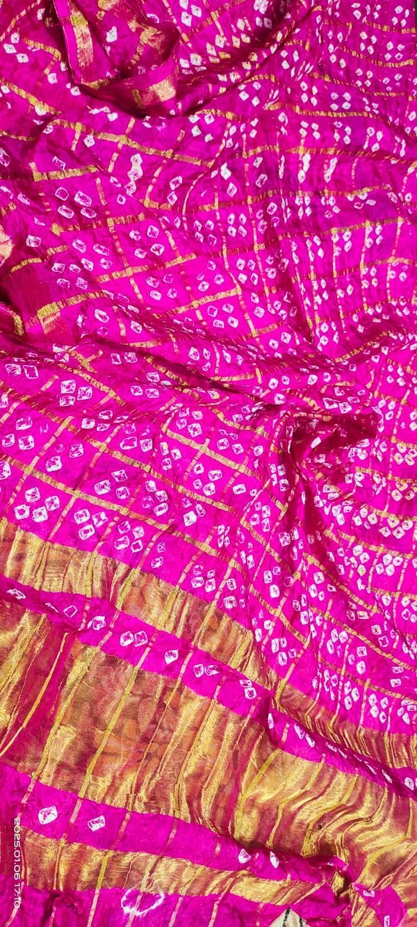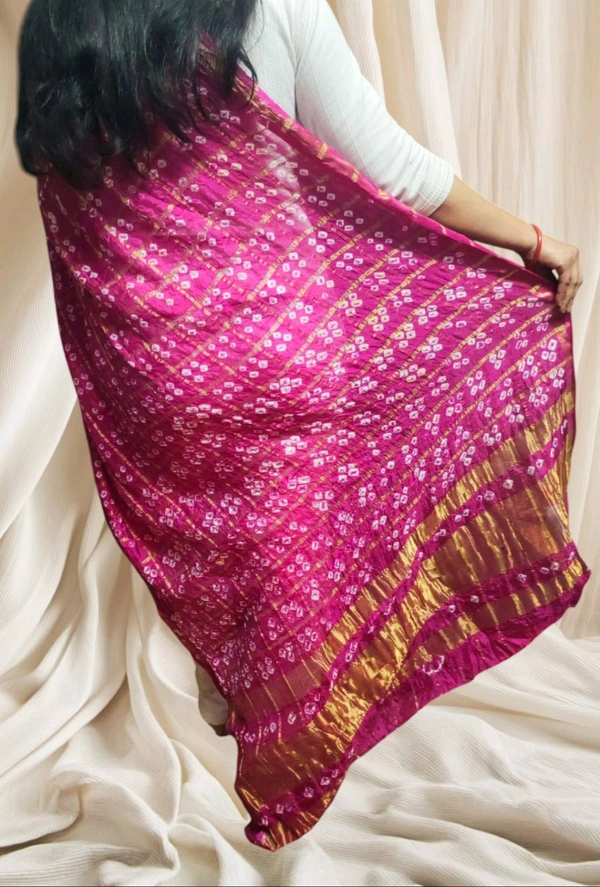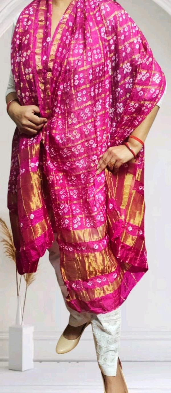 Bandhani Women's Original Bandhej Gharchola Silk Dupatta With Chex And Lagdi Pallu(2.30 + Meter)