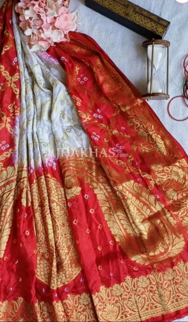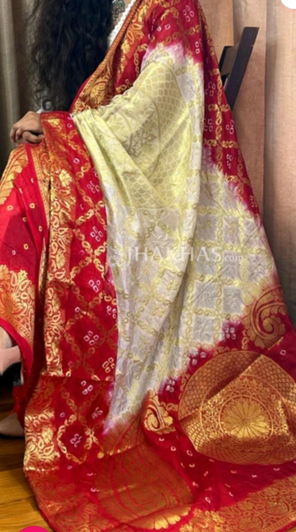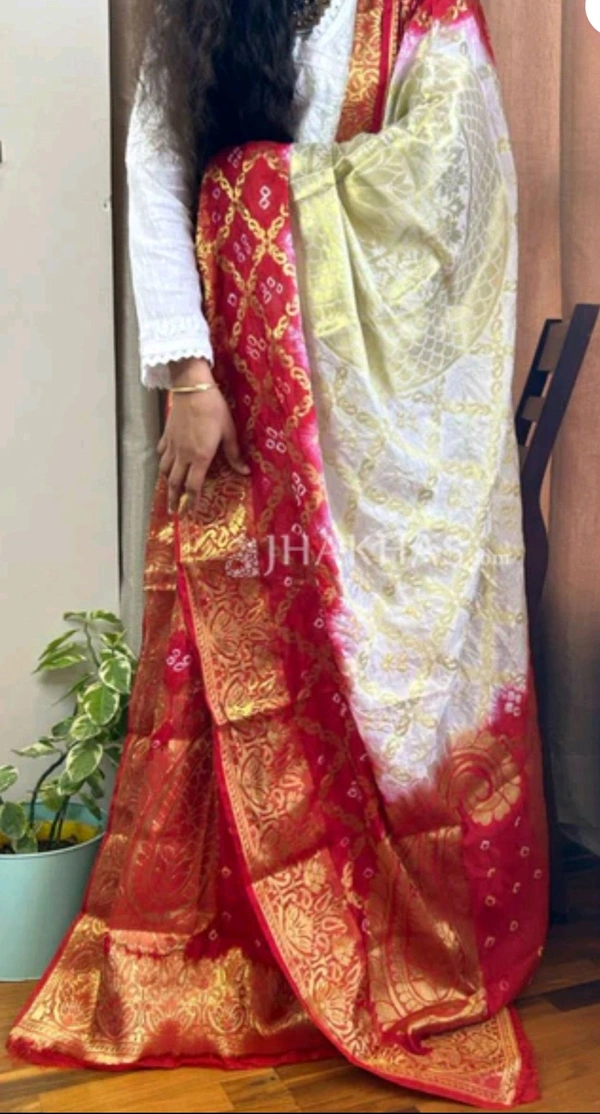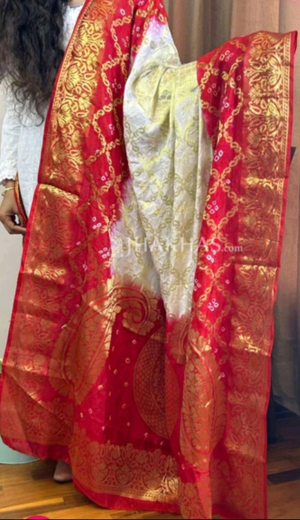 Ethnic White And Red Ghatchola Silk Banarasi Zari Dupatta