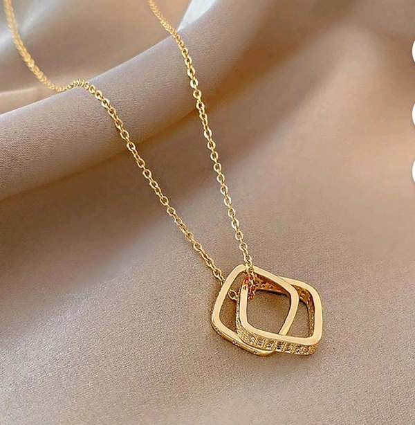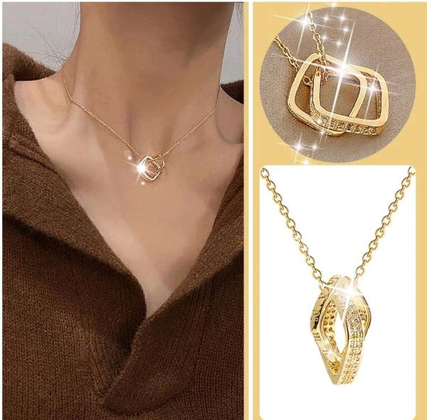 Square Double Interlocking Circle Ring Pendant/ Necklaces