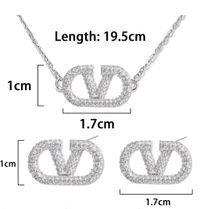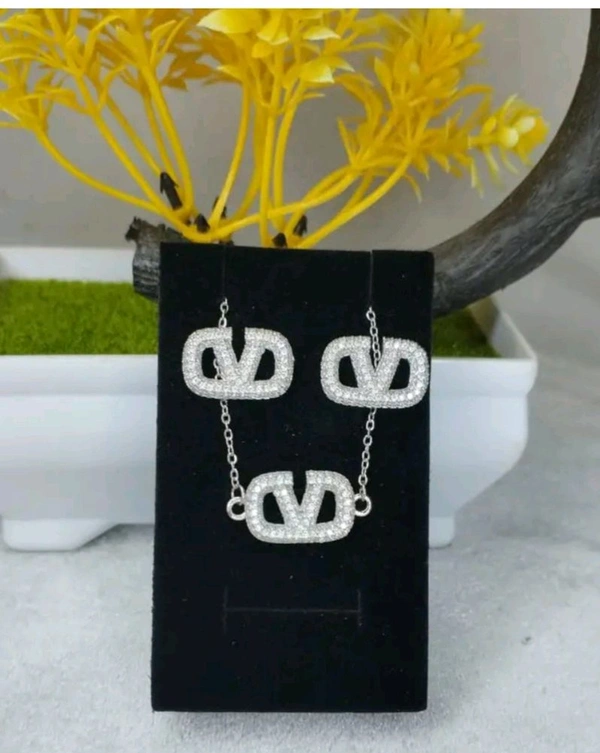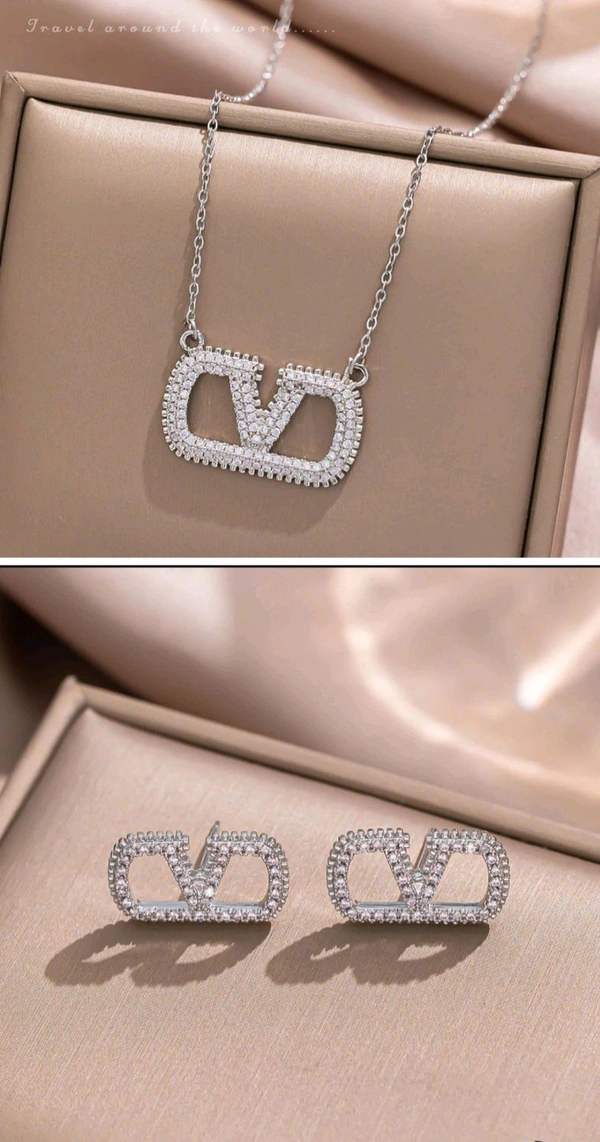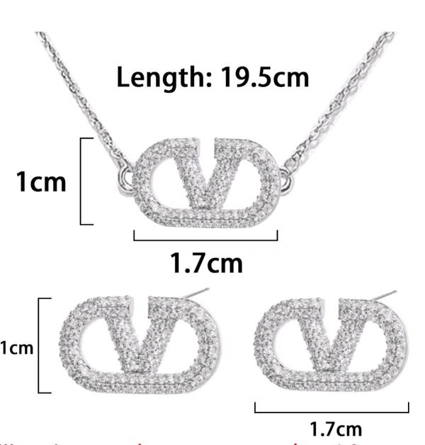 Elegant Letter V Stud Earrings Pendant Set with American Diamonds