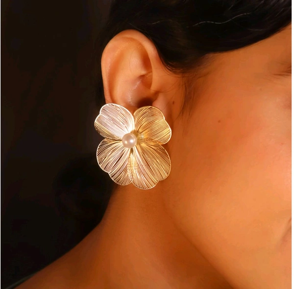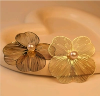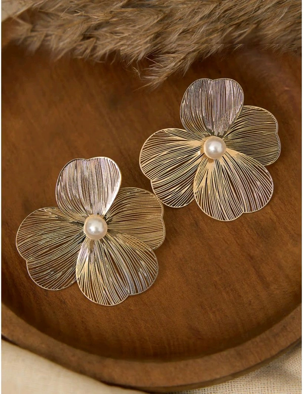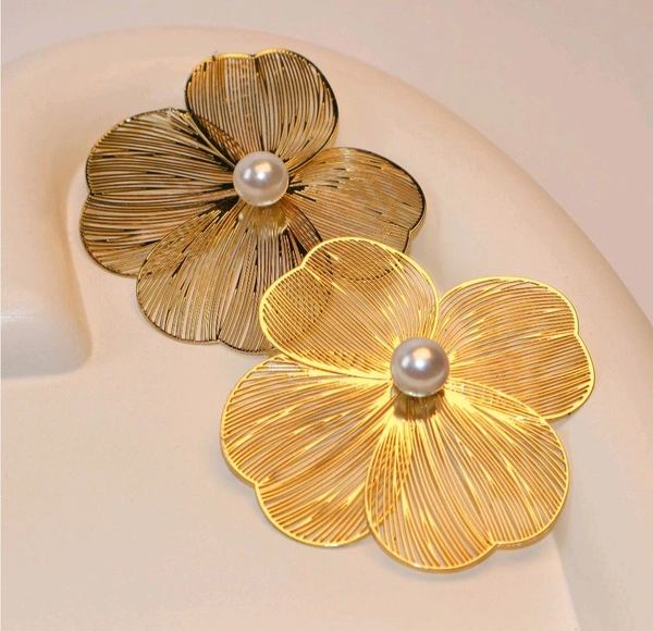 Buy Gold Flower Pearl Earrings for Women Large Flower Pearl Earrings Pearl Dangle Earrings Double Flower Statement Earrings Wedding Party Jewellery