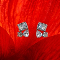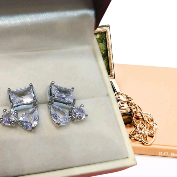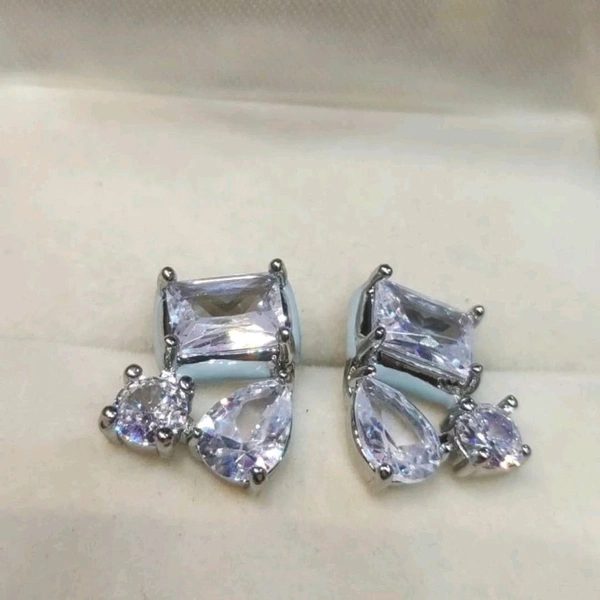 White Stone Silver Plated Small Studs Earrings